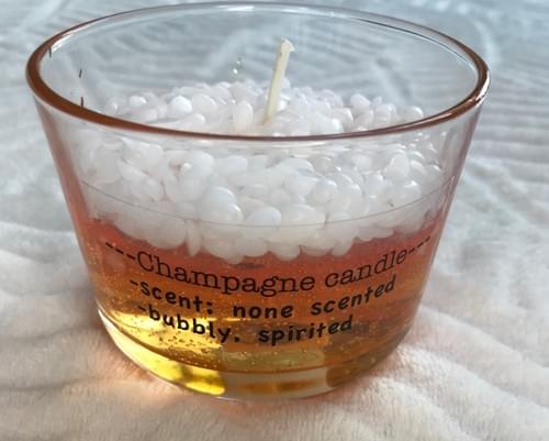 This is a home made candle it is none scented, this candle is bubbly and spirited. Shop for your candle now!!